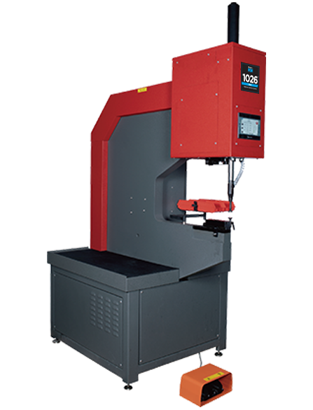 1026Pro最大压力达到100kN,可以轻松处理大型和重型材料,确保作业效率和处理能力。喉深达到26in,为大型工件提供足够空间,使得操作更加灵活,扩展了机器的应用范围。结构坚固,设计合理,能够承受长时间的高强度工作,减少维护成本。配置 Haeger® 专利安全系统,保障操作安全;采用 PLC控制系统,配备 7 寸屏幕操作界面,操作便捷直观,系统内置计数功能。
